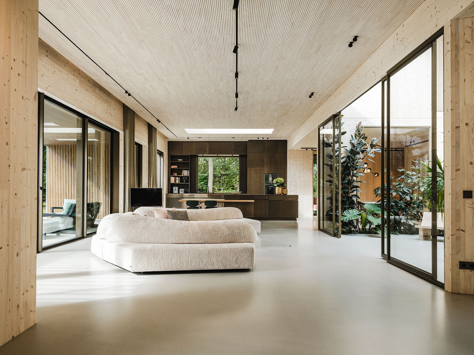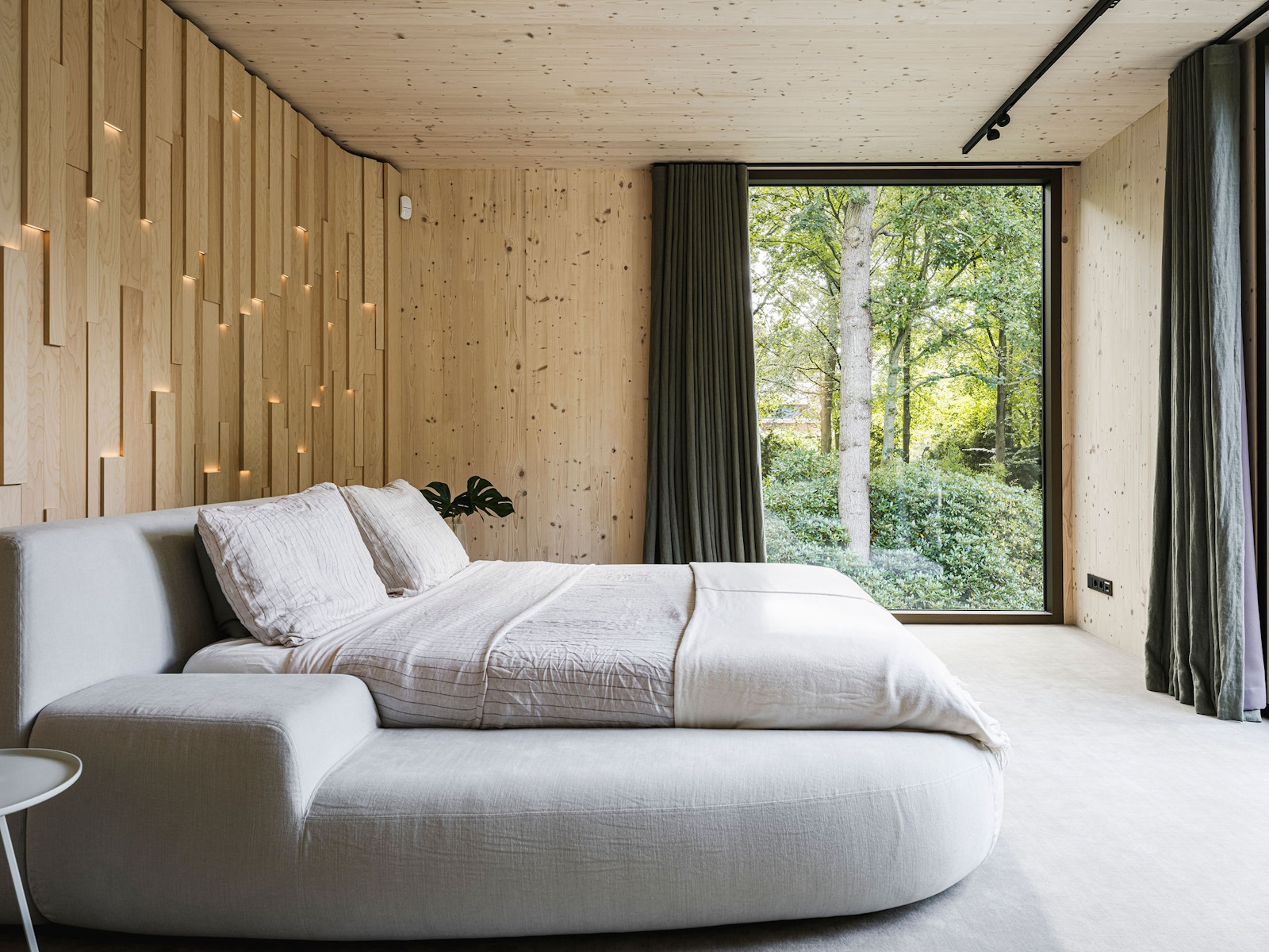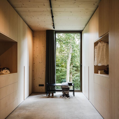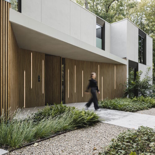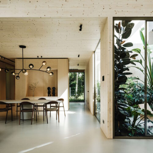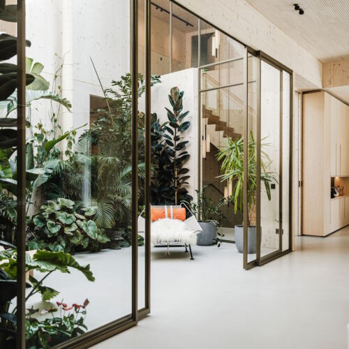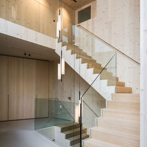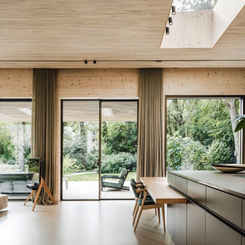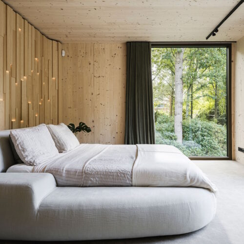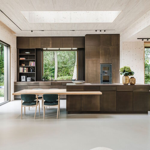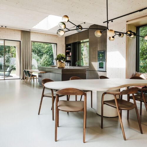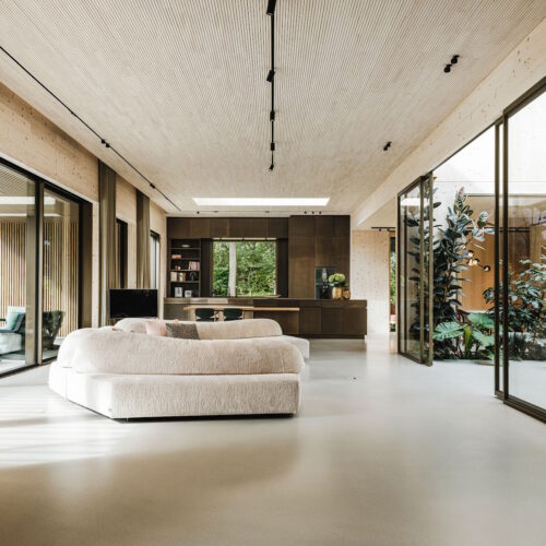 Deze unieke woning is geheel opgebouwd uit CLT hout. Dit is een bewuste en duurzame manier van bouwen geweest wat in de voorbereiding veel aandacht vergde van de betrokken partijen. Daarnaast is er rekening gehouden met duurzame energie, denk hierbij aan PV panelen, accu’s en zonnewarmte voor het zwembad. Dit in combinatie met Basalte Sentido KNX tasters.