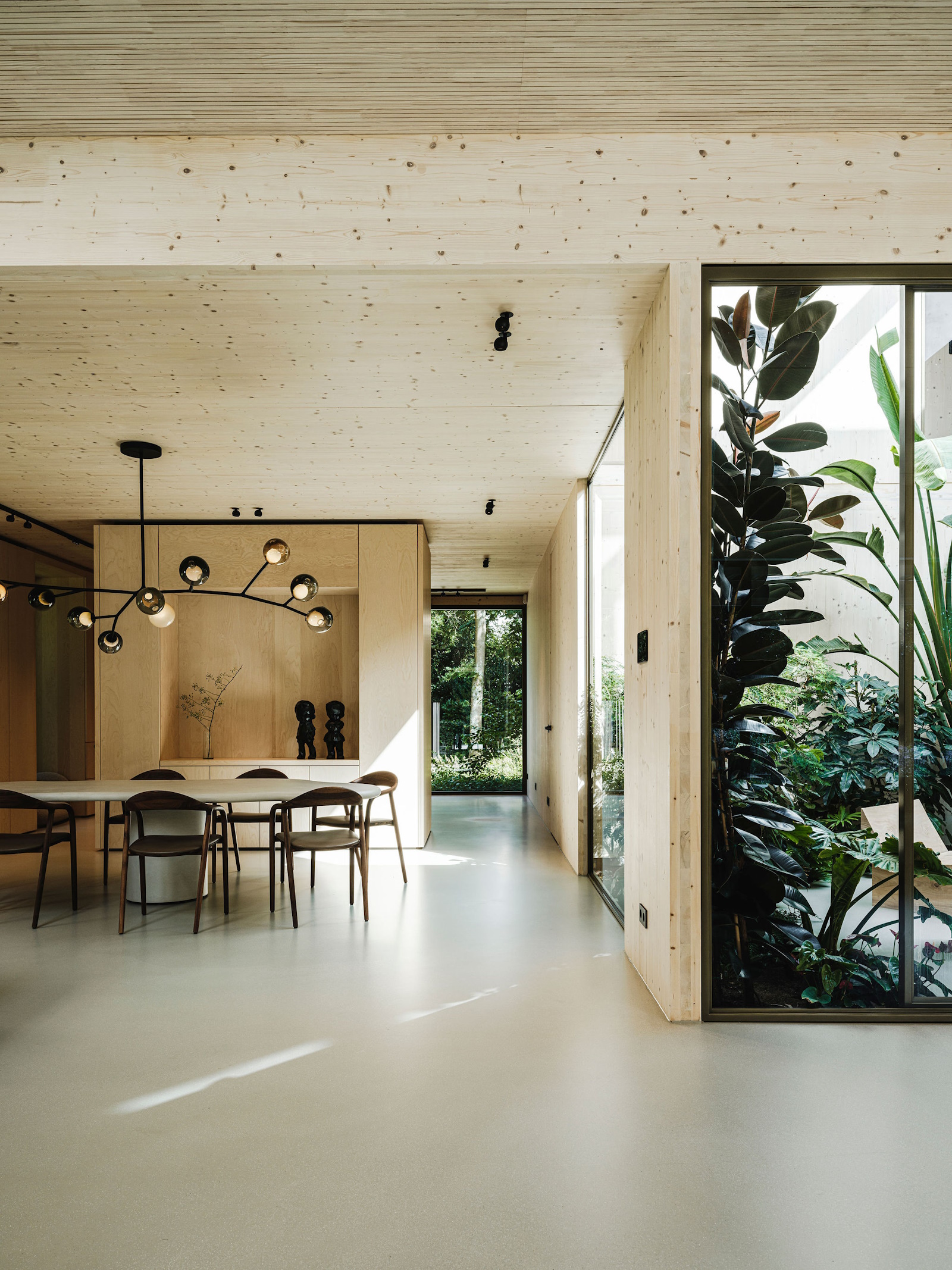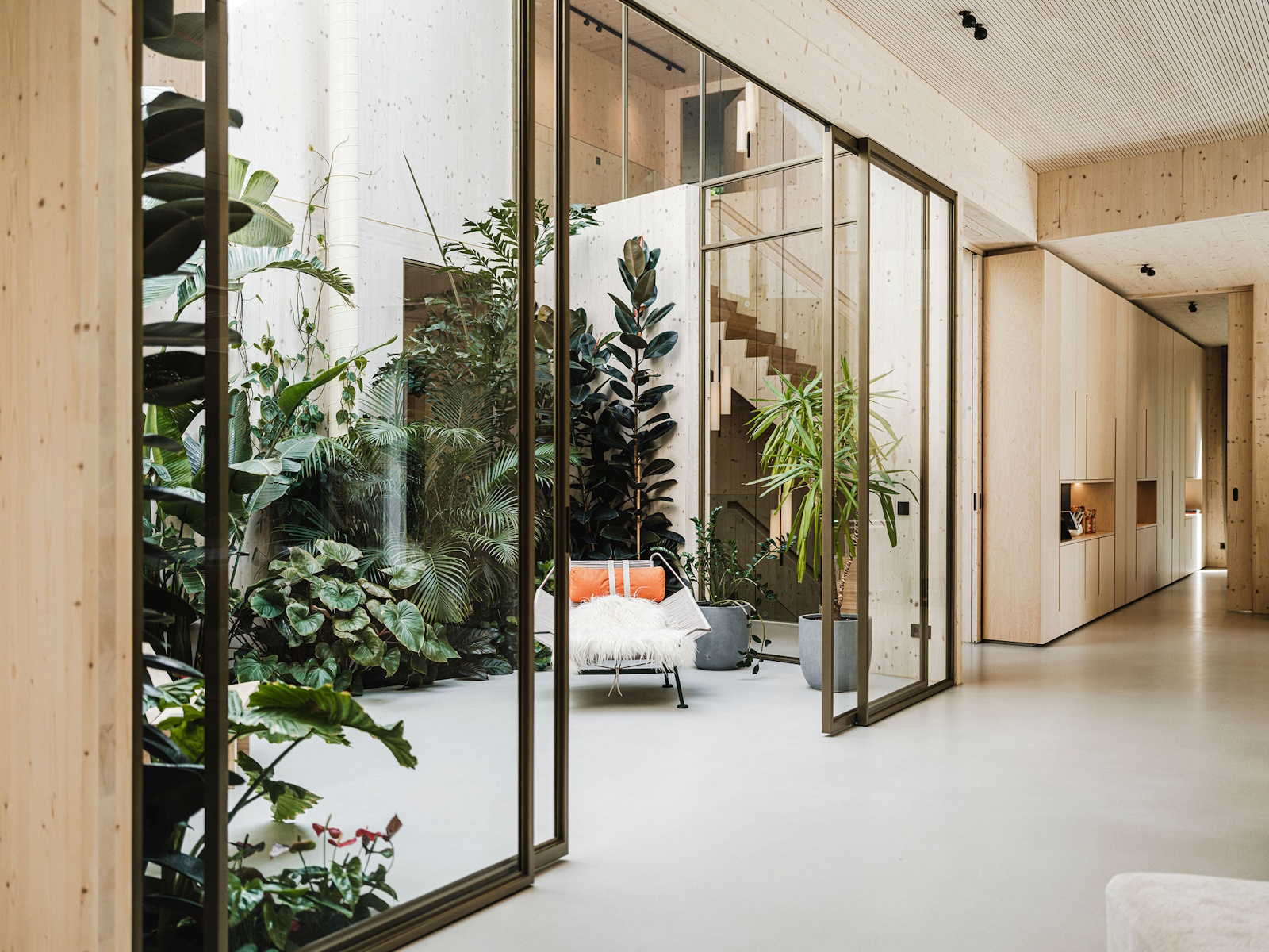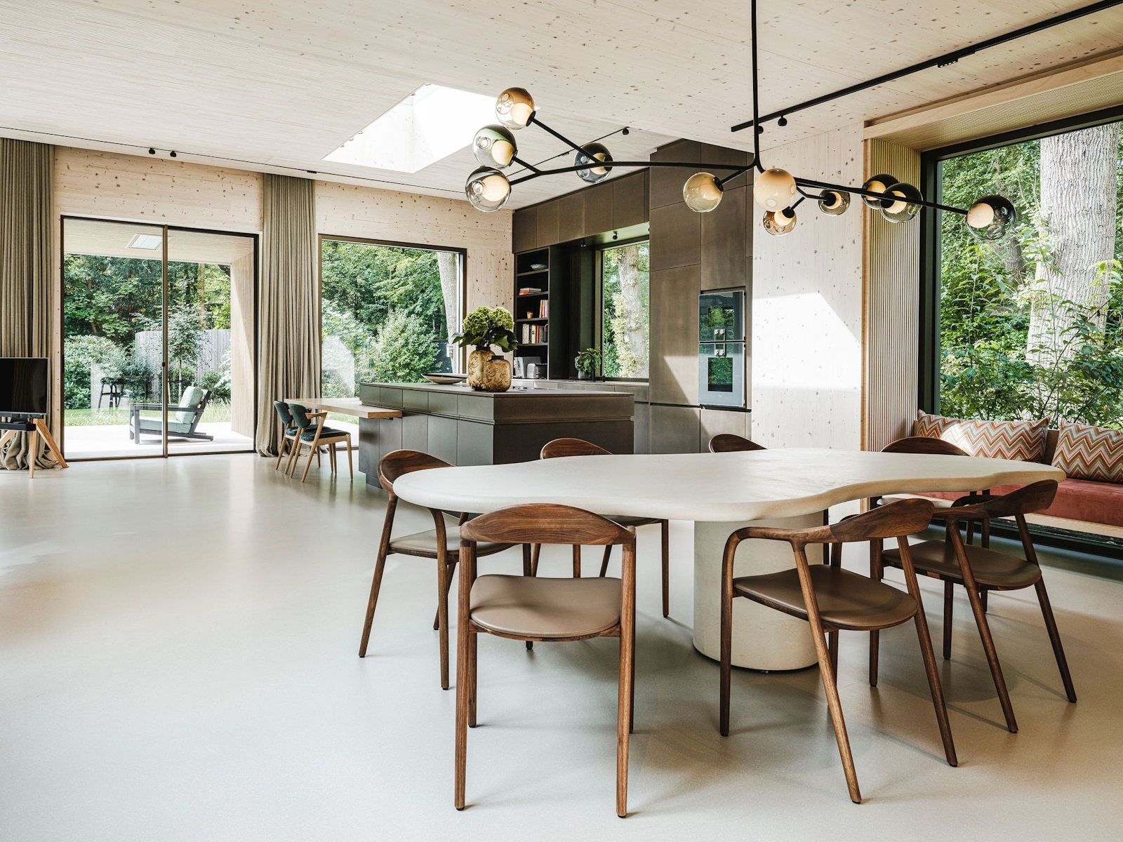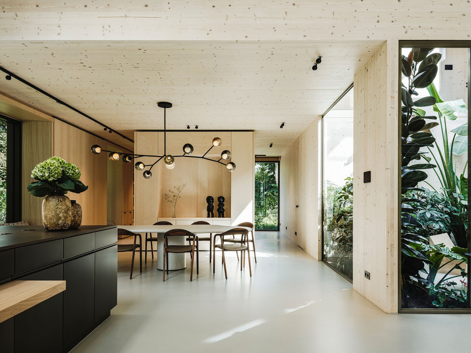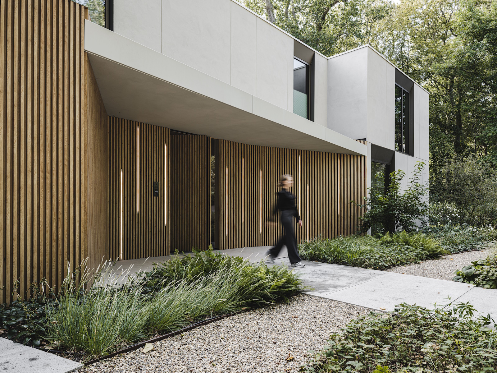 Deze unieke woning is geheel opgebouwd uit CLT hout. Dit is een bewuste en duurzame manier van bouwen geweest wat in de voorbereiding veel aandacht vergde van de betrokken partijen. Daarnaast is er rekening gehouden met duurzame energie, denk hierbij aan PV panelen, accu’s en zonnewarmte voor het zwembad. Dit in combinatie met Basalte Sentido KNX tasters.
