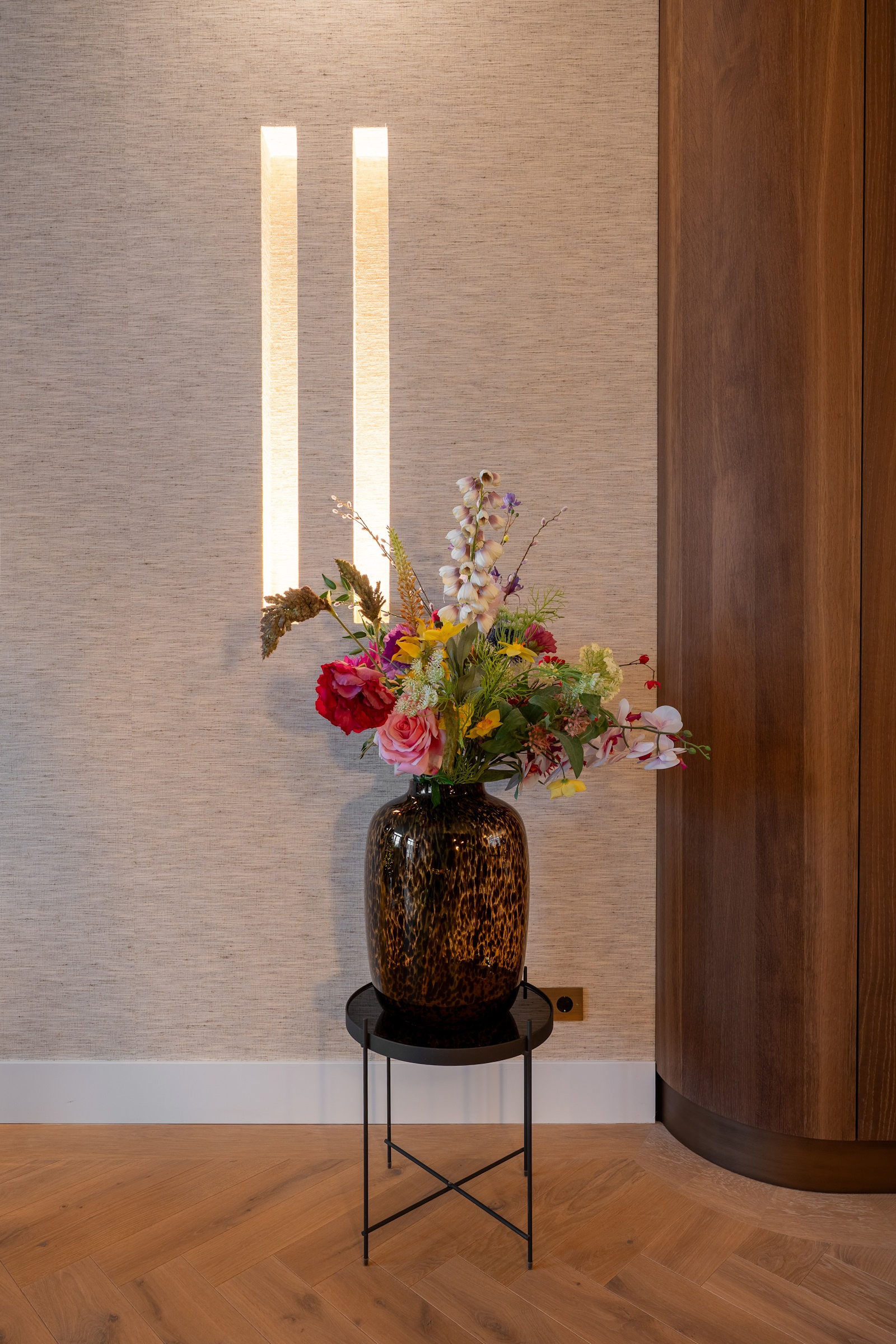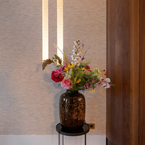 Bij deze woning in Noordwijk is veel aandacht besteed aan de afwerking. De verlichting, de accenten, het interieurwerk; alles is met zorg uitgekozen en op elkaar afgestemd.